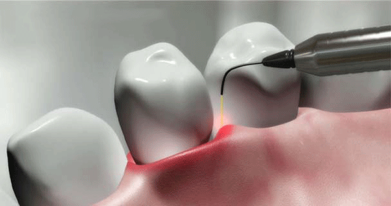 A laser uses light energy to perform the dental procedure and can treat the targeted tissue while leaving the surrounding tissues unaffected.
